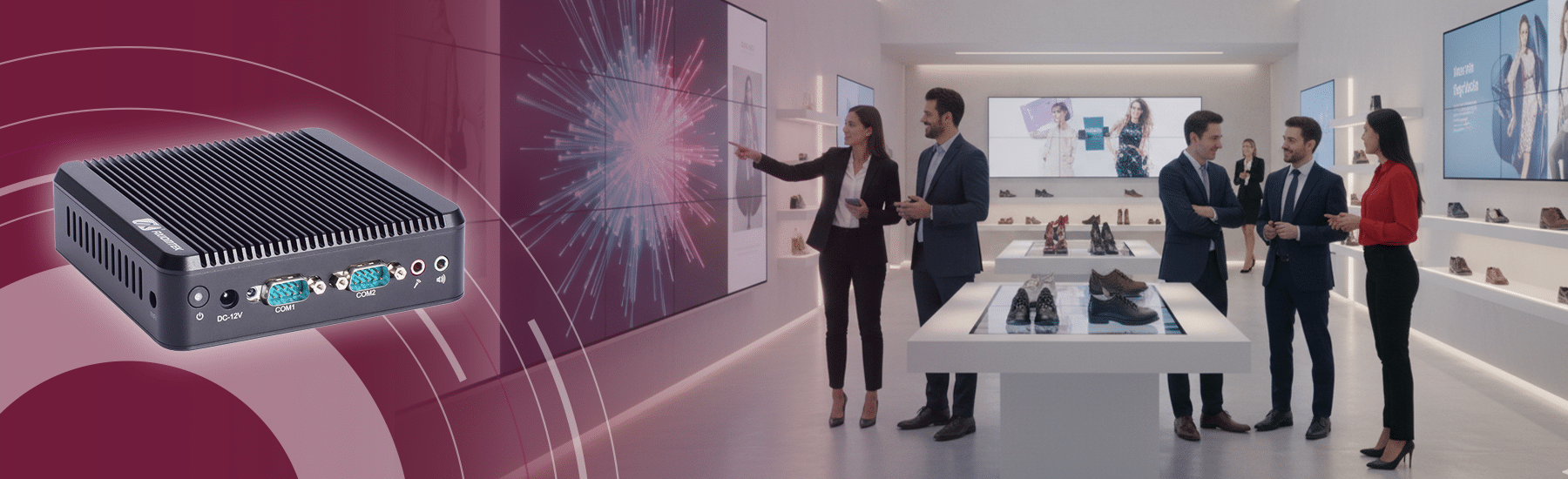Mit Abmessungen von nur 137 × 127 × 41 mm und einem Gewicht von nur 0,5 kg lässt sich die Digital-Signage-Plattform problemlos in engen Bereichen wie Kassenplätzen, Kiosken oder Regalanzeigen integrieren. Das kleine Format ermöglicht eine flexible Montage und gewährleistet gleichzeitig einen zuverlässigen 24/7-Betrieb.